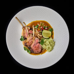 ラムボーンをココナッツミルクで煮て、風味を出します。
